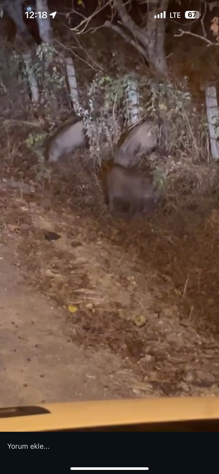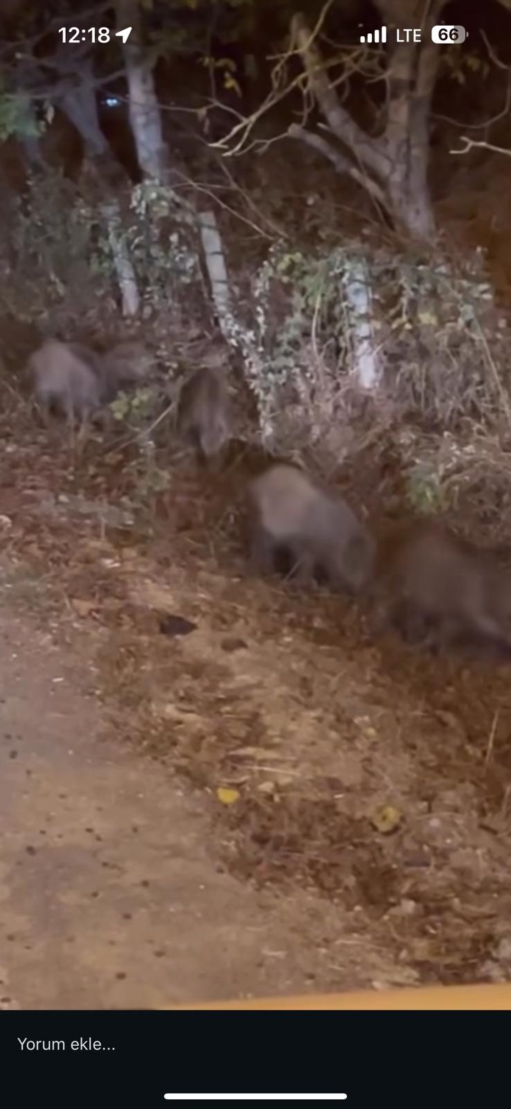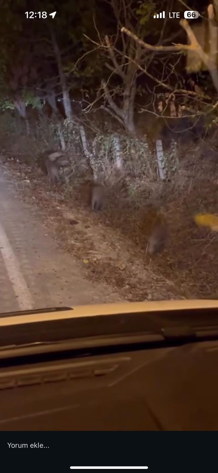 O esnada yoldan geçen bir vatandaş, domuz sürüsünü cep telefonu kamerasıyla anbean kayıt altına aldı. Görüntülerde domuzların yiyecek arayışı için yol boyunca ilerlediği görüldü.
