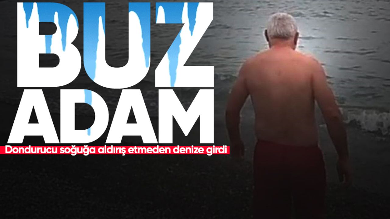 Zonguldak'ta “Buz Adam” lakaplı olarak tanınan Atanur Öner, dondurucu soğuğa aldırış etmeden denize girerek dakikalarca yüzdü.