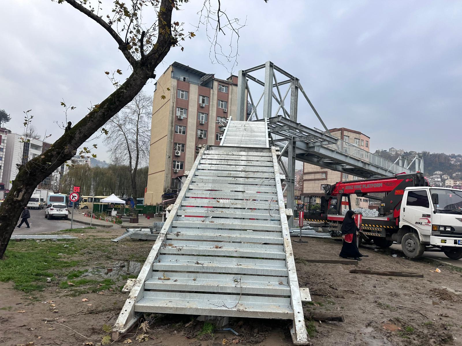 Zonguldak’ta yapımına başlanan ikinci üst geçitte çalışmalar hız kesmeden devam ediyor. Zonguldak Çevreyolu üzerinde inşa edilen üst geçitte, bugün itibariyle merdiven montajı tamamlandı.