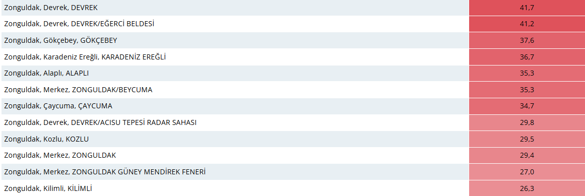 İŞTE ZONGULDAK VE İLÇELERİNDE ÖLÇÜLER SICAKLIK DEĞERLERİ: