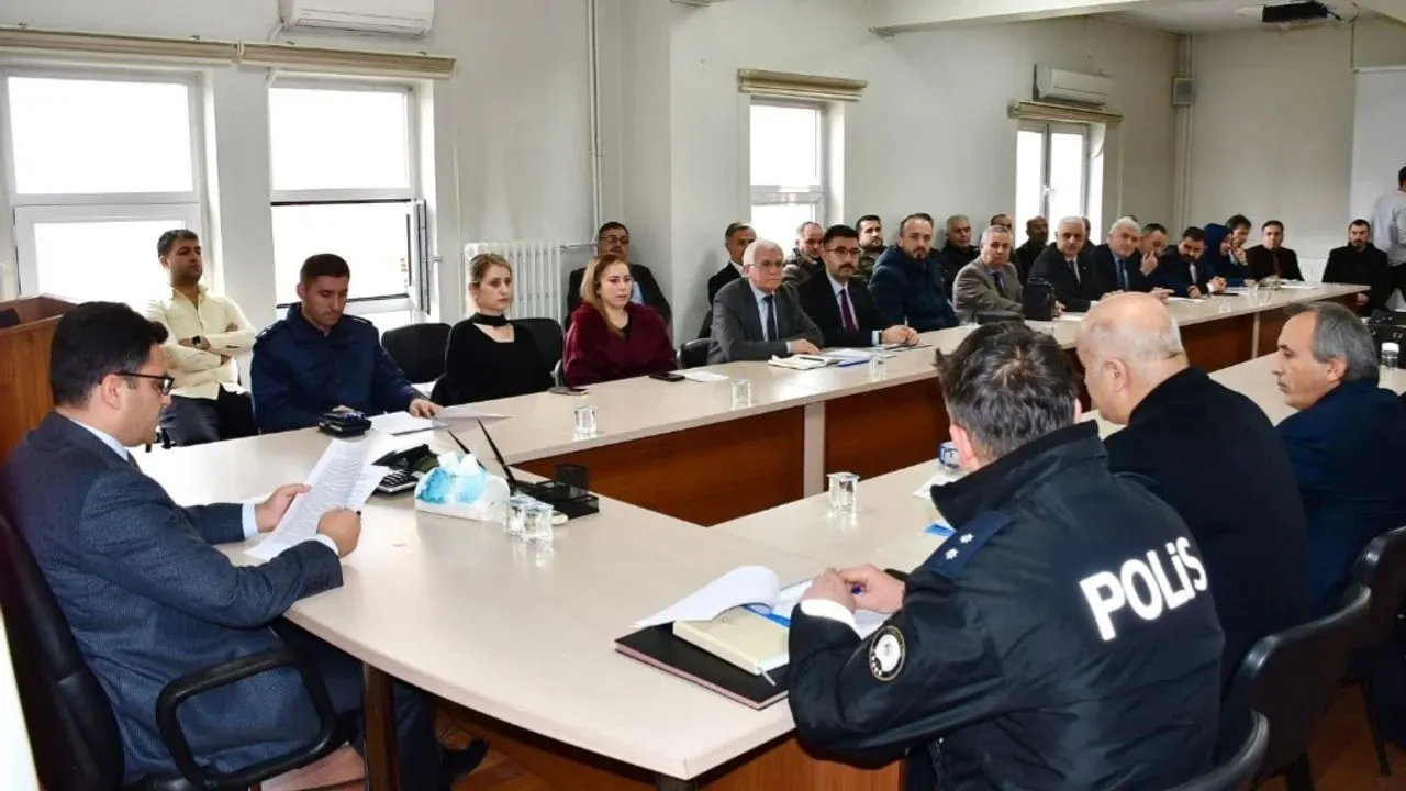 Toplantıya ilgili kurum amirleri, emniyet ve jandarma yetkilileri, okul yöneticileri, okul aile birliği başkanları ile servis şoförleri katıldı. İlçedeki okullarda huzurlu ve güvenli bir eğitim ortamının sağlanması amacıyla kurumlar arası iş birliği ve koordinasyonun güçlendirilmesi ele alındı.