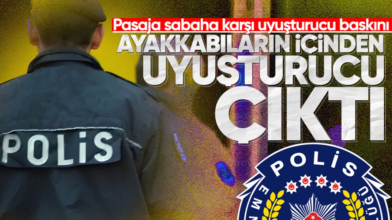 KOM tarafından yapılan baskında, pasajdaki bir giyim mağazasında yapılan aramalarda ayakkabıların içine gizlenmiş esrar maddesi ele geçirildi. Aynı bölgedeki bir tütüncüye de eş zamanlı baskın yapıldı.