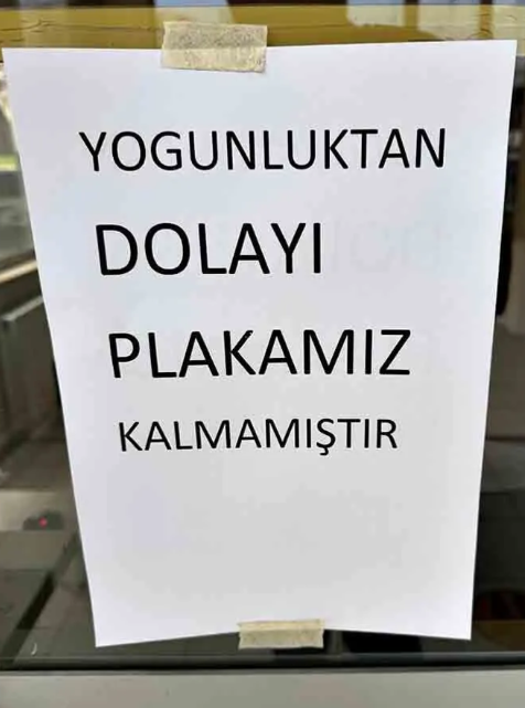 Zonguldak Şoförler Odası’na, 1 Nisan itibarıyla APP plaka kullanan sürücülere 140 bin TL para cezası uygulanacak olması nedeniyle yoğun ilgi yaşandı. Oda, yaşanan yoğunluk sebebiyle “Yoğunluktan dolayı plakamız kalmamıştır” uyarısı yaparak sürücüleri bilgilendirdi.