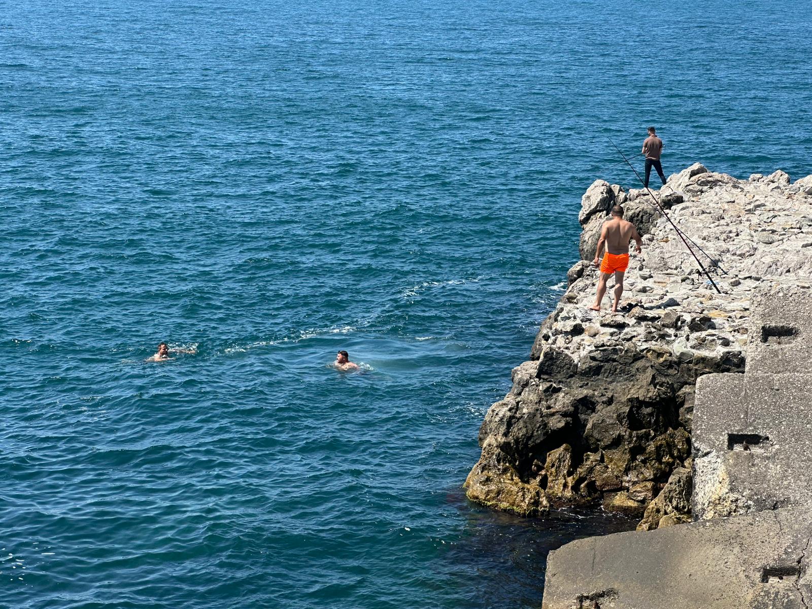 Zonguldak'ta termometrelerin 28 dereceyi göstermesiyle birlikte, sıcak havadan bunalan vatandaşlar soluğu liman arkasında aldı. Kimileri serinlemek için denize girerken, kimileri oltalarıyla balık tutmanın keyfini çıkardı. Bazı vatandaşlar ise kayalıklarda oturarak manzaranın tadını çıkardı.
