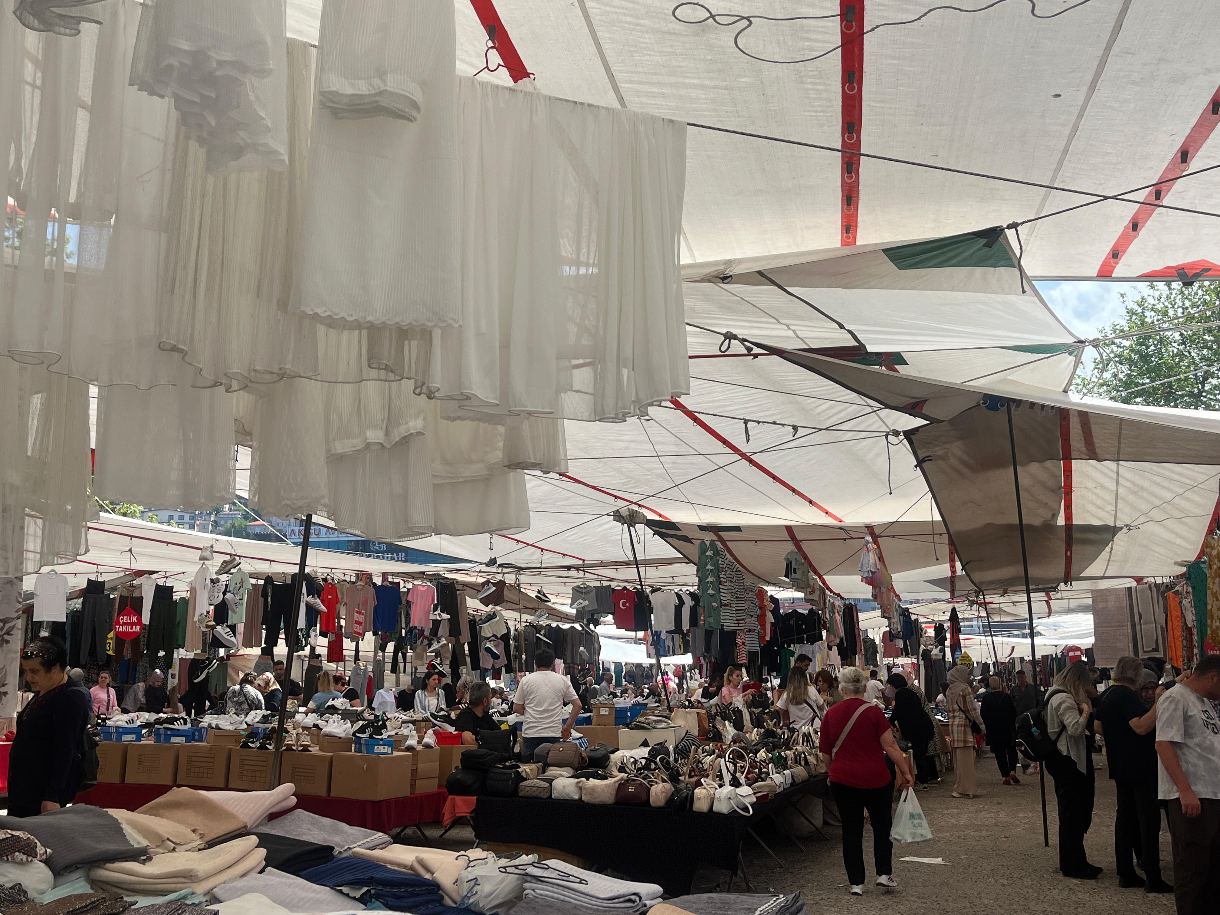 Artan enflasyon nedeniyle bütçesini zorlamak istemeyen birçok vatandaş, uygun fiyatlı ürünleriyle bilinen Sosyete Pazarı’na yöneldi. Kadınların ağırlıklı olarak ilgi gösterdiği pazarda, yazlık elbiseler, ayakkabılar ve çantalar en çok tercih edilen ürünler arasında yer aldı.