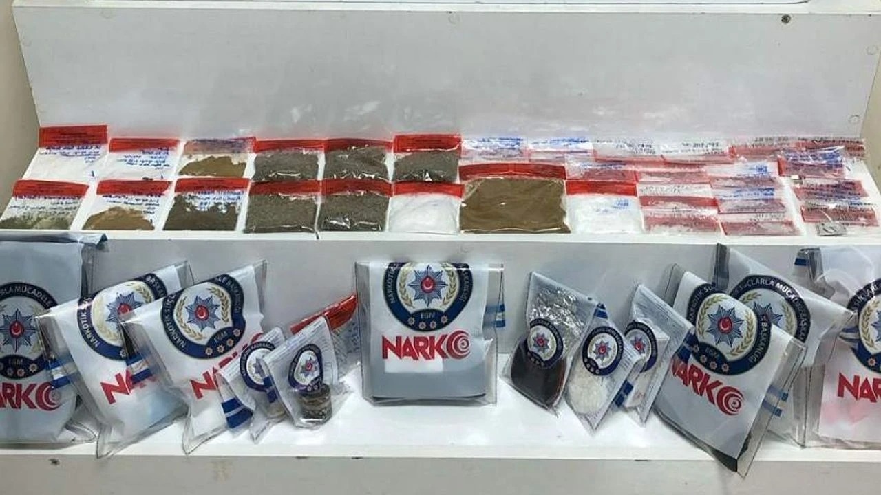 Operasyonda; 97 gram metamfetamin, 98 gram sentetik kannabinoid, 54 adet sentetik ecza hap, 1 gram Afyon sakızı, 12 adet uyuşturucu kullanma aparatı ele geçirildi.