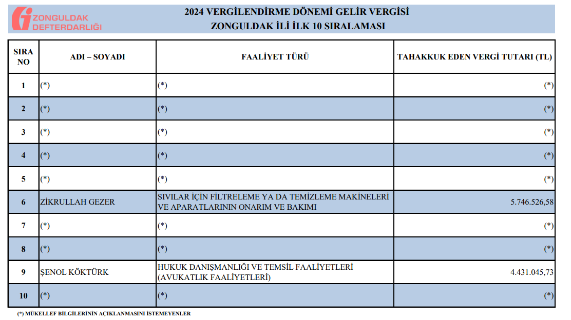 Gelir İdaresi Başkanlığı (GİB), 2024 vergilendirme dönemine ilişkin yıllık gelir vergisi ve kurumlar vergisi beyannamelerinin değerlendirilmesi sonucunda Zonguldak genelinde en fazla vergi beyan eden kurumlar açıklandı.