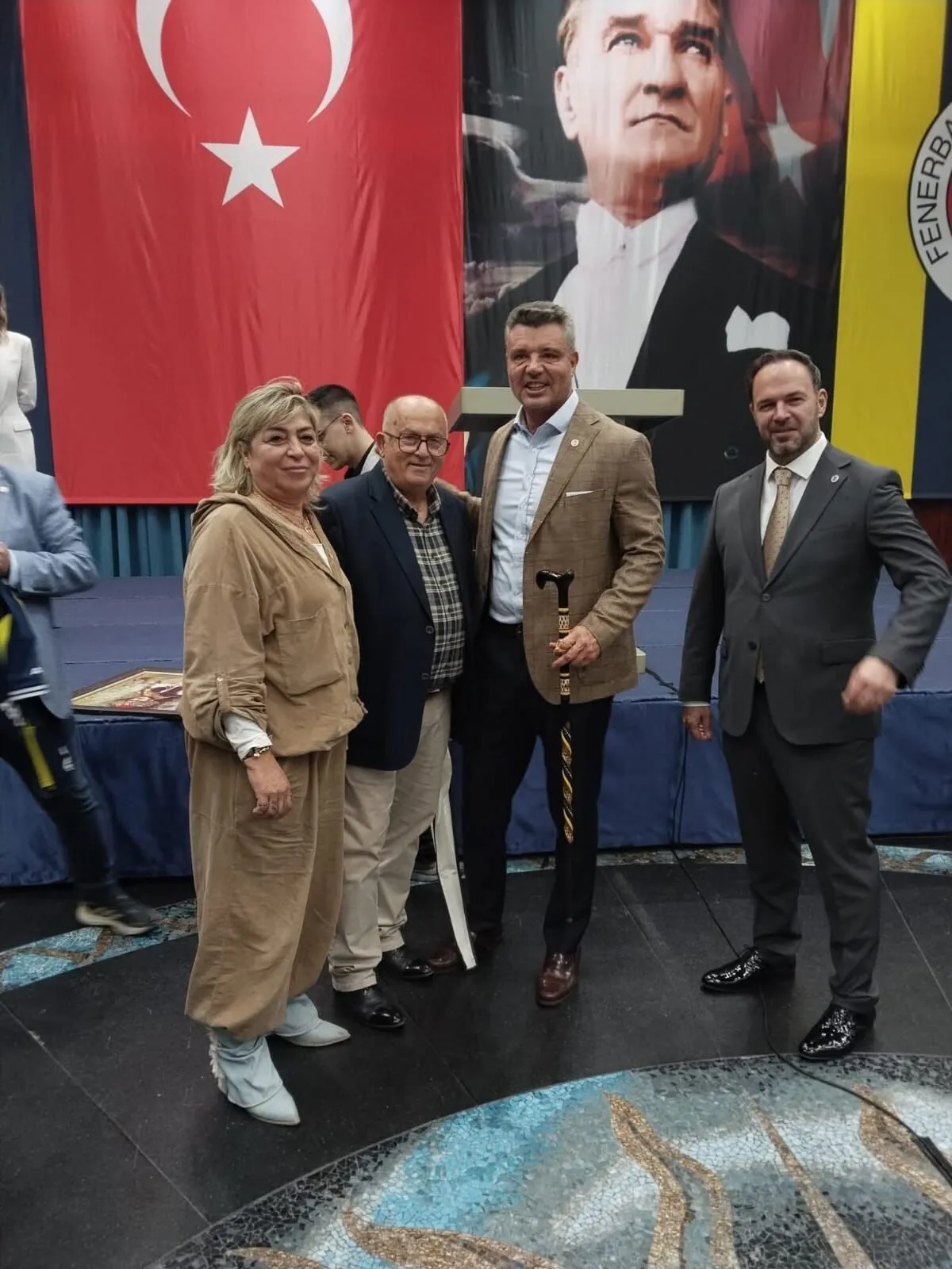 Zonguldak Fenerbahçe taraftarlar Derneği yönetimi, Fenerbahçe Başkanı Saadettin Saran ile bir araya gelerek Devrek bastonu hediye etti.